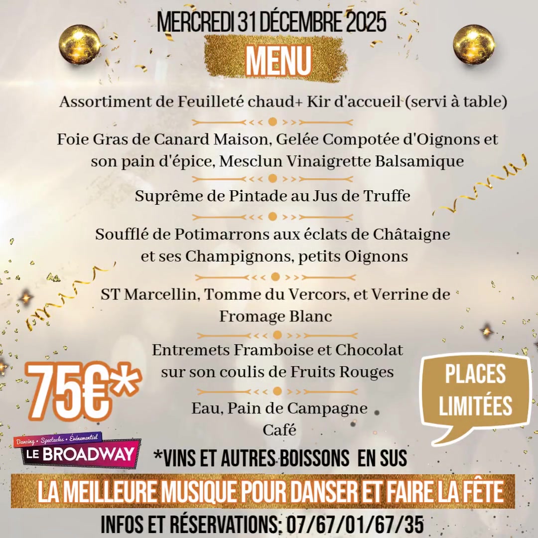Cette année encore le Broadway vous propose un Réveillon festif pour danser et faire la fête.